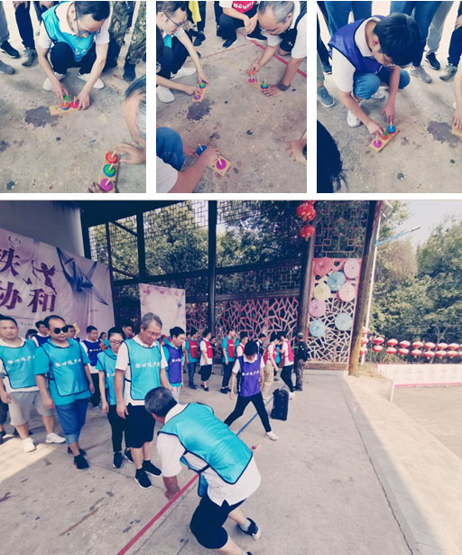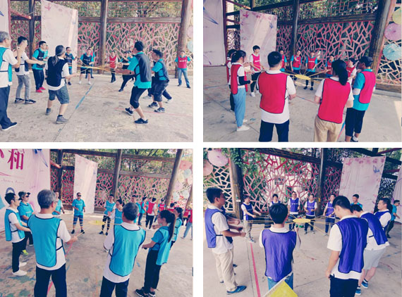 接下來是“鼓動人心”的時刻,同一小組成員以圓面板為中心站圈,相互拉繩保持面板平衡,面板上放一小球,要求面板和球都不能落地的情況下,哪組的顛球次數最多為勝。在這次小游戲中大家從中體驗到高度協(xié)作帶來的團隊成就。